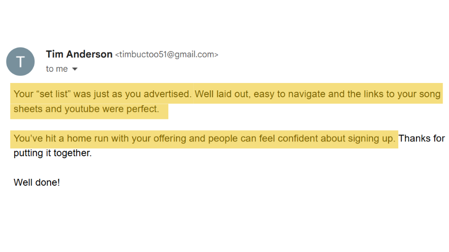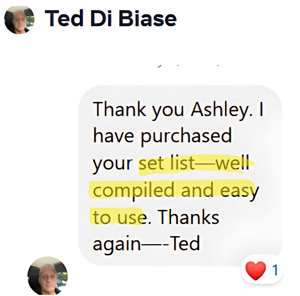 The difference with my setlist is I'm saving you time - years actually - to find out what crowds love and putting it all in one spot to just click and play.