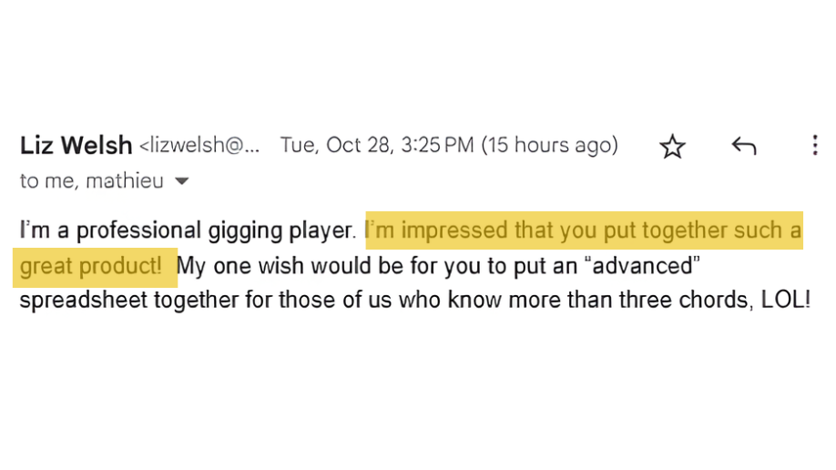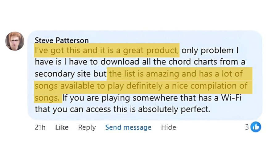 ❌ People who don't like the convenience of being able to click a link of over 600 hit songs and be led right to the chords and lyrics to simply click and play!