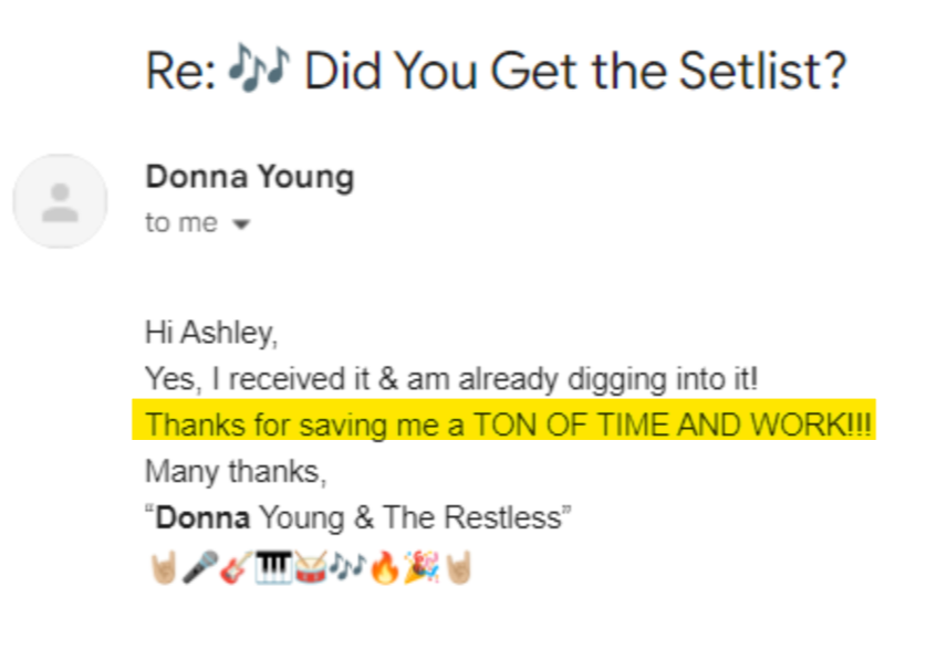 The difference with my setlist is I'm saving you time - years actually - to find out what crowds love and putting it all in one spot to just click and play.Ā Ā